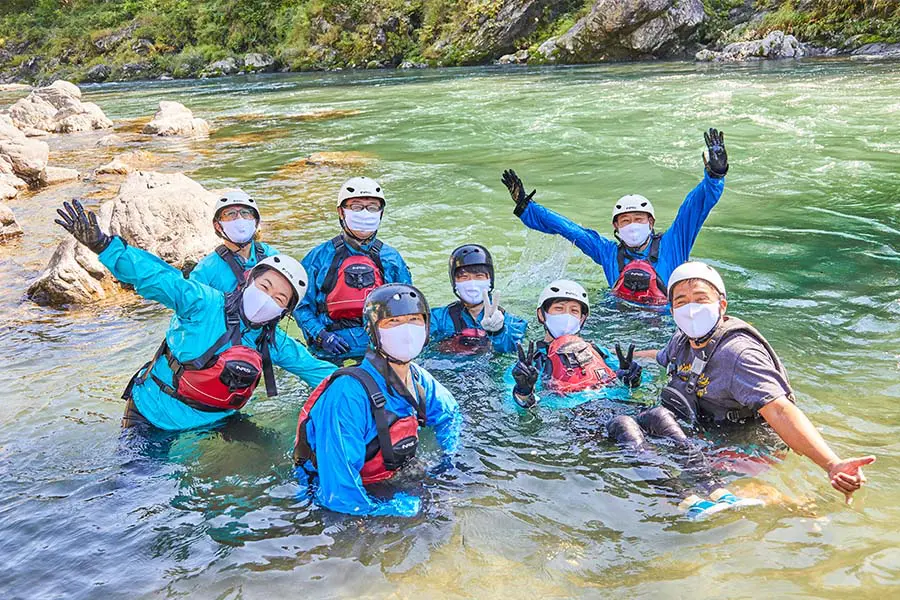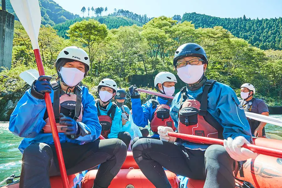 東京都青梅市の御岳渓谷で、ラフティングボートに乗って、川を下りながらゴミを拾うアクティビティです。渓谷上流から下流へ約5kmのコースを、ラフティング世界選手権2位の経歴を持つインストラクターの方と一緒に下ります。