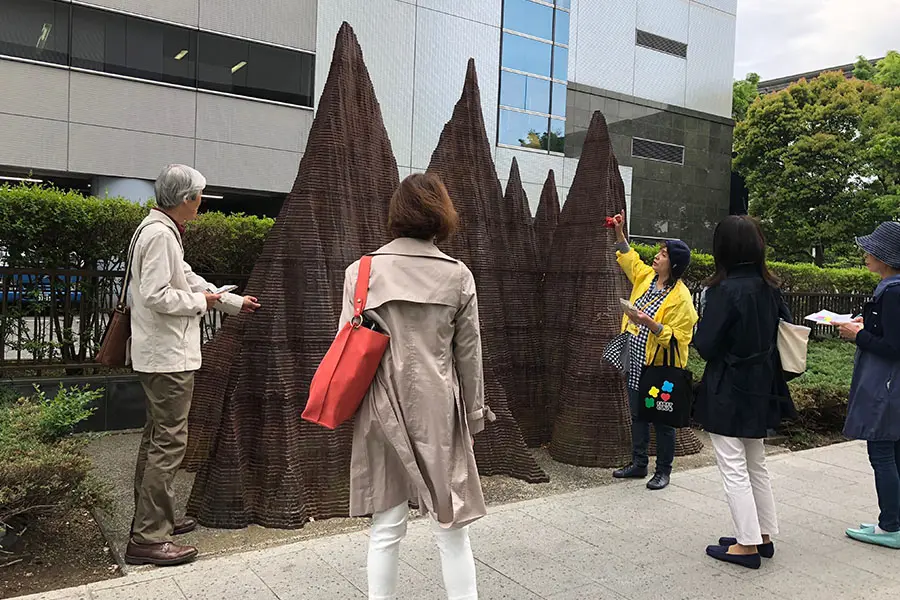 その109ものアートを隅々まで熟知した市民ボランティアグループ「ファーレ倶楽部」のメンバーのガイドのもと、立川のアート街を歩きます。