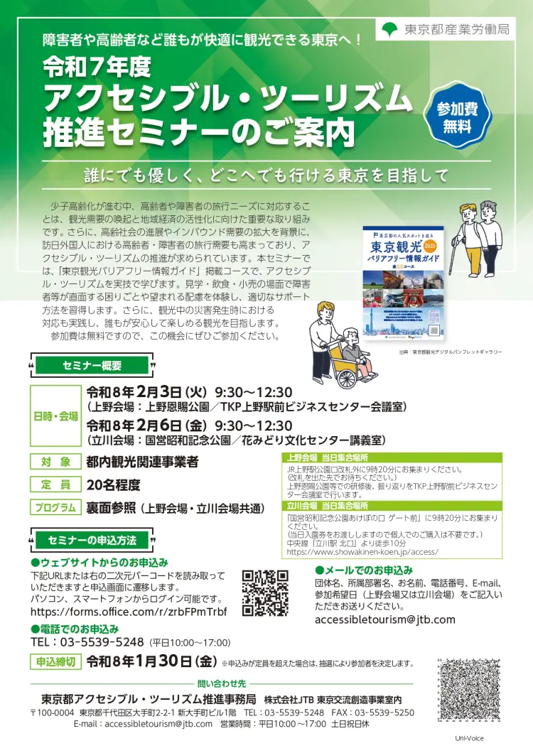 東京都は、障害者や高齢者等が安心して都内観光を楽しめるようアクセシブル・ツーリズム推進セミナーを開催しています。