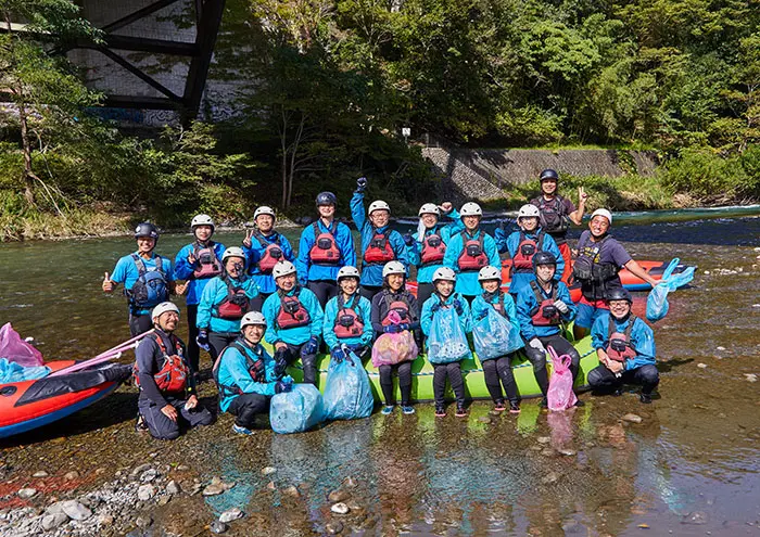 東京都内のDMO・アウトドアメーカー・海外プランナー・MICE関連事業者等を招待し、多摩川をラフティングで下りながら河川のゴミを拾いその量を競うリバークリーンのアクティビティを体験しました。おくたま路で着替え・入浴・昼食をいただいた後に広間でセミナーを受講し、楽しみながら学びのある体験を実践しました。